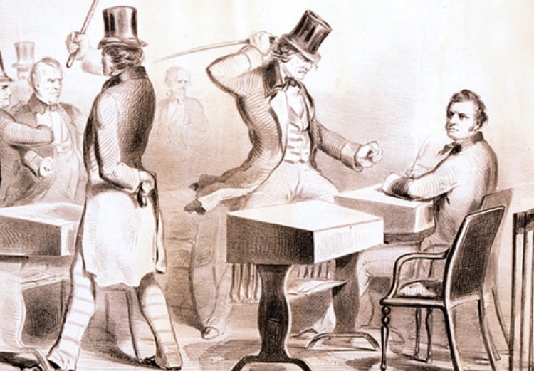 For this attack, Brooks was forced to resign his seat in the House. However, his fellow Southern delegates were so supportive of what he’d done that they made rings from the splintered wood of his cane to wear in solidarity. Back in South Carolina, Brooks’ constituents were similarly supportive and not only reelected him to Congress, but sent in droves gold-tipped canes to replace the one he broke.