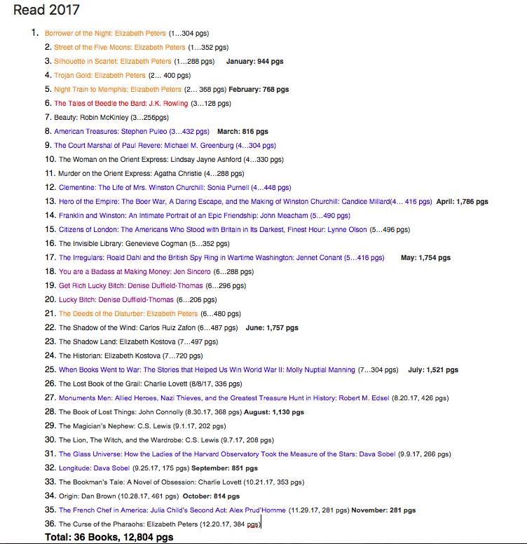 -read 36 books: 12,804 pgs, 21 Fiction, 15 Non-Fiction