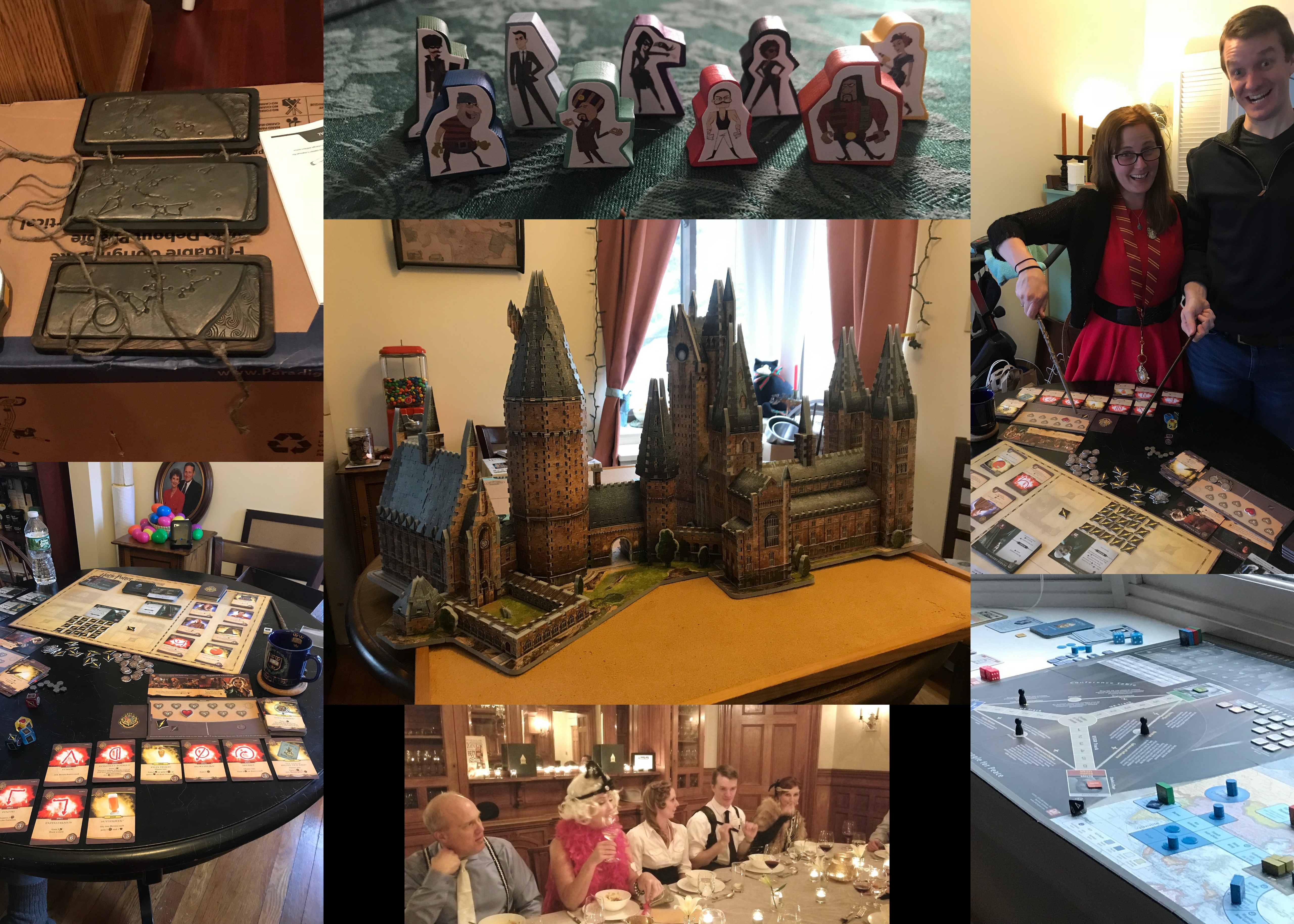 Games and puzzles! Hogwarts was my Christmas present. I’d never done a 3-d puzzle. It was a blast! And now we have a backdrop for when we play Harry Potter Hogwarts Battle. We also played a lot of Burgle Bros last year, (spending good time with those mischievious thieves up at the top), tried a box from the Mysterious Package Company, and attended a prohibition era murder mystery weekend in Maine! We also won WWII a couple of times, so you know, time well spent.